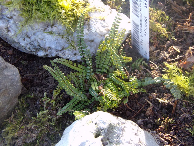 Einer der neuen, immergrünen Farne, zart, fein, kleinbleibend zwischen "Felsenspalten"
