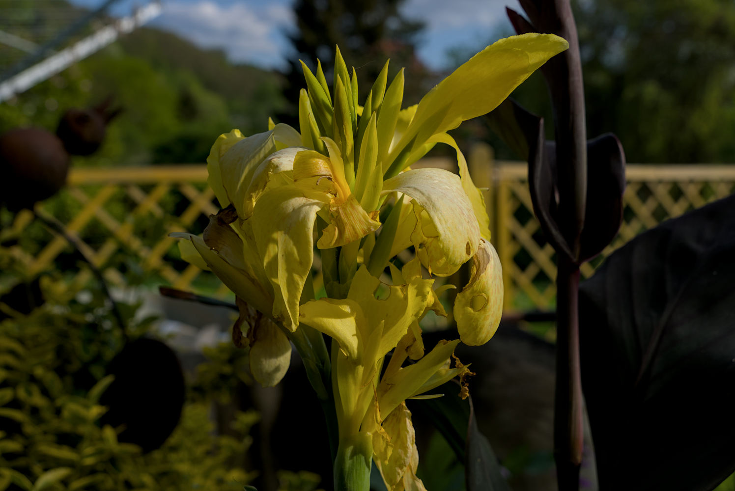 Den rosa Schlitzahorn, div Wasserpflanzen, Canna Mix, Erdbeeren und div Blumen