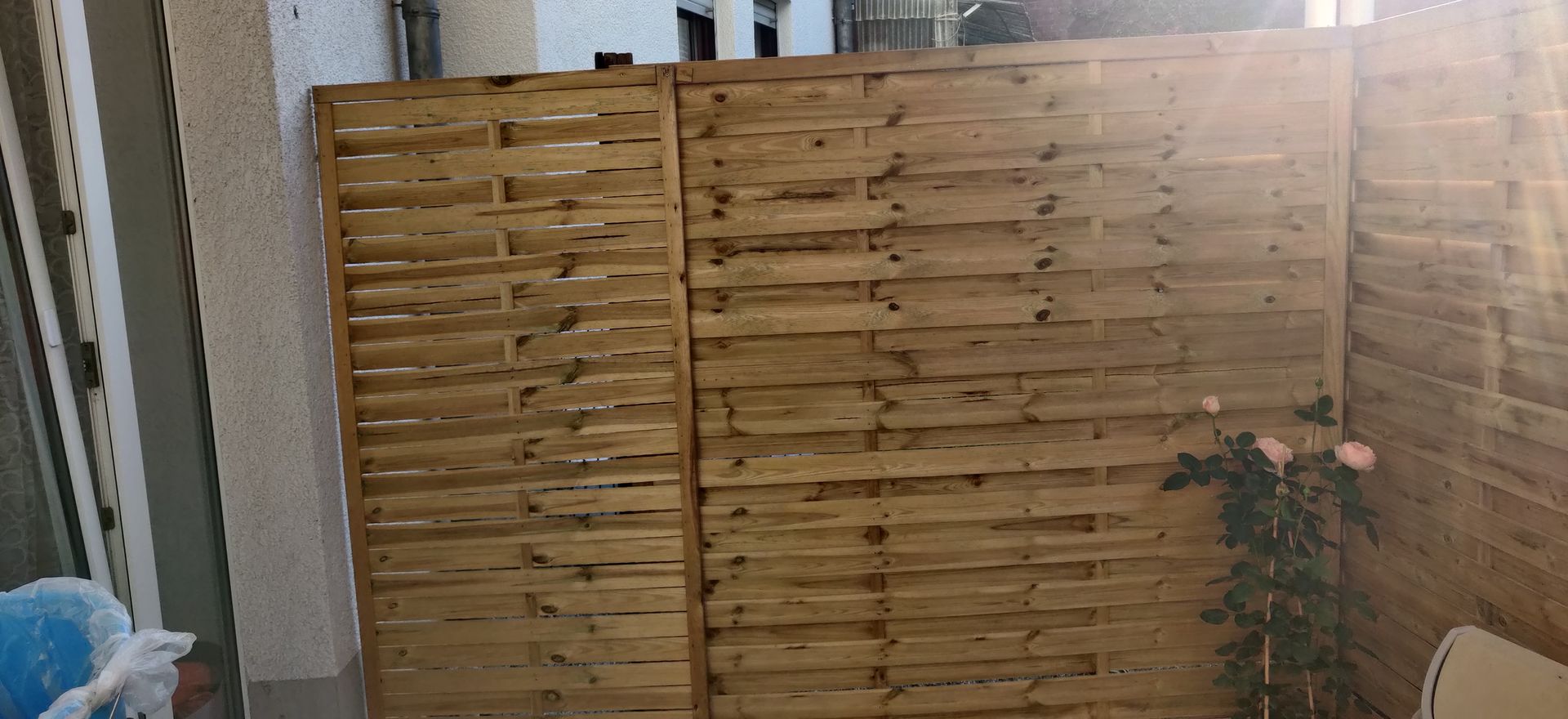 jetzt zeige ich Euch mit einigen Bilder wie unsere Terrasse aussieht mit dem neuen Zaun der neue Zaun ist viel höher als der andere auch ist unsere Terrasse etwas größer geworden.