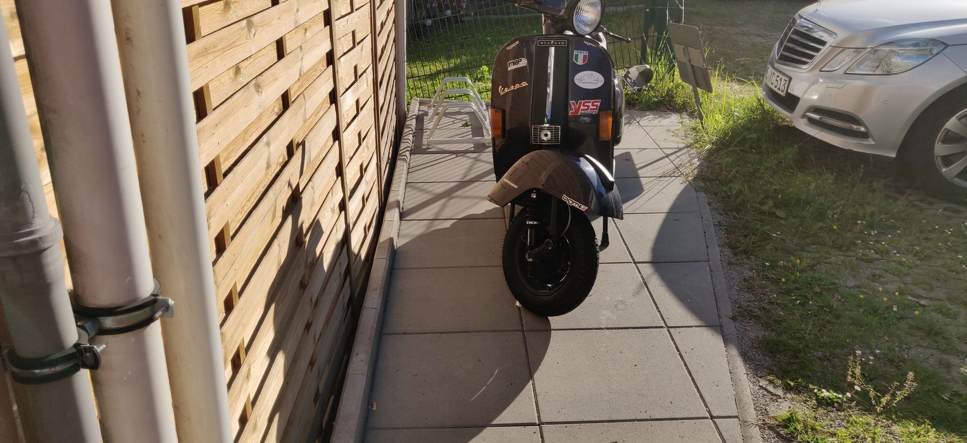 hier ist der parkplatz für den Motorroller und die Fahrräder zu sehen.